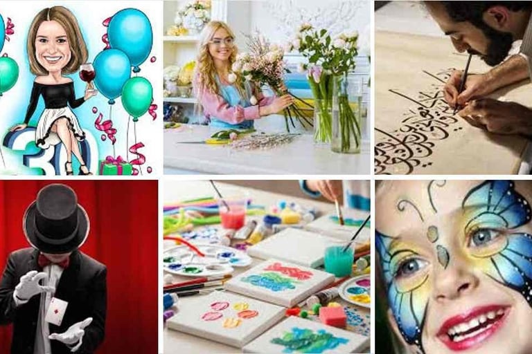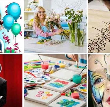 Arts & Crafts, Music, Master of Ceremony, Face Painting, Clown Cyclist, MAscot, Story Telling, Magician, Florist, Calligraphy, Henna, Caricature, Kids Attendant, Customer Service